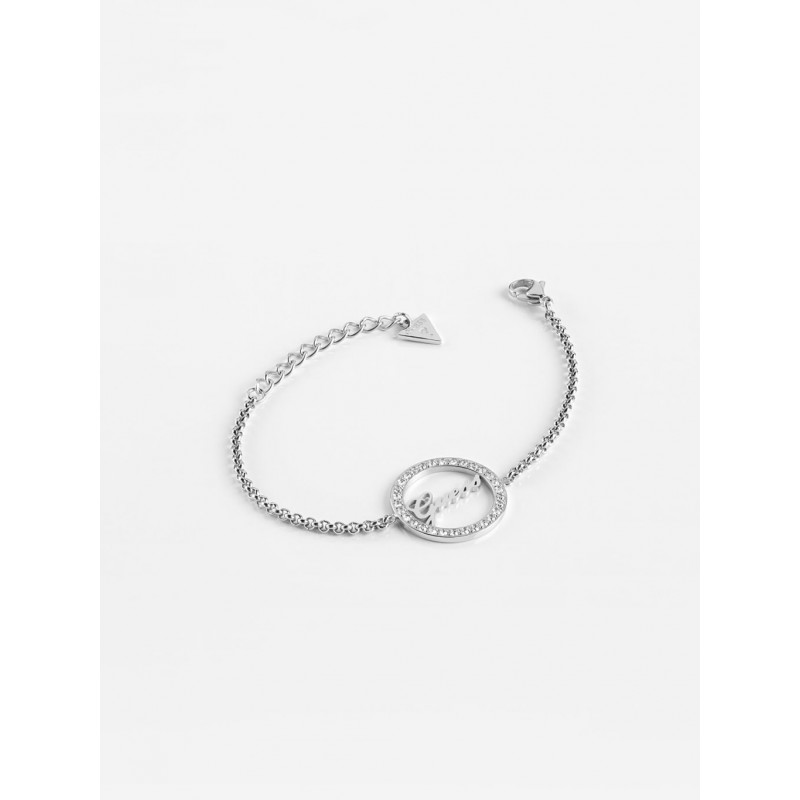 PULSERA "ALL AROUND YOU" DESCRIPCIÓN Pulsera de acero enchapado. Estructura de cadena. Colgante círculo con inscripción logo. Pavé de cristales Swarovski®.